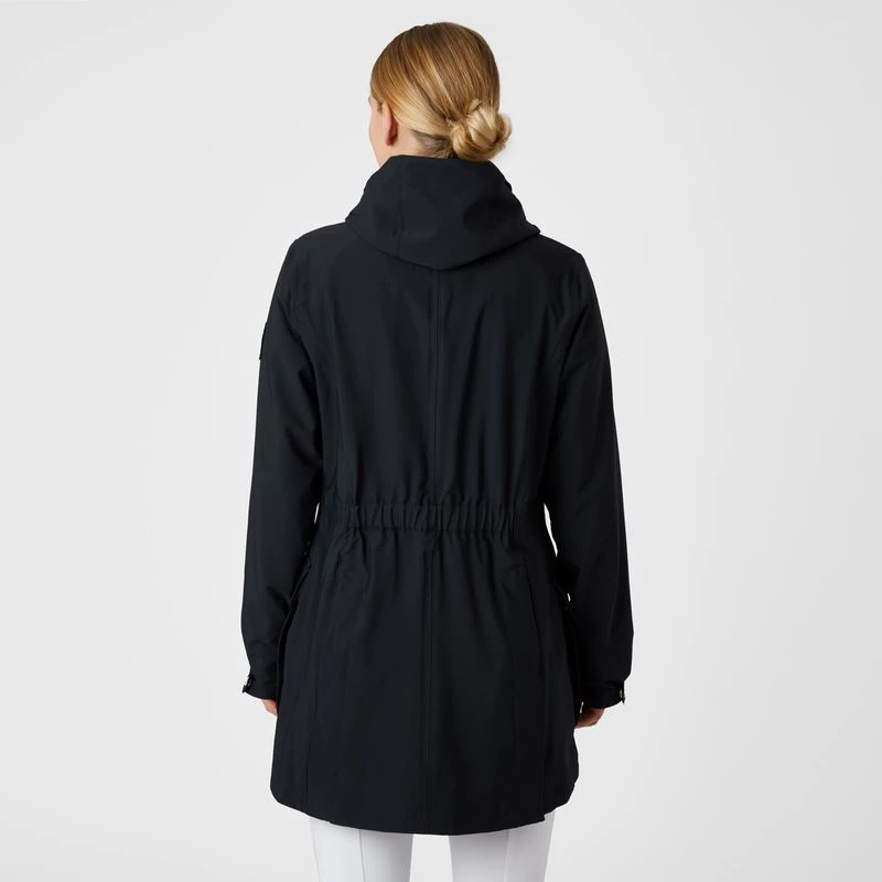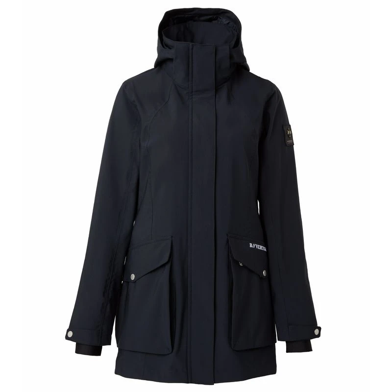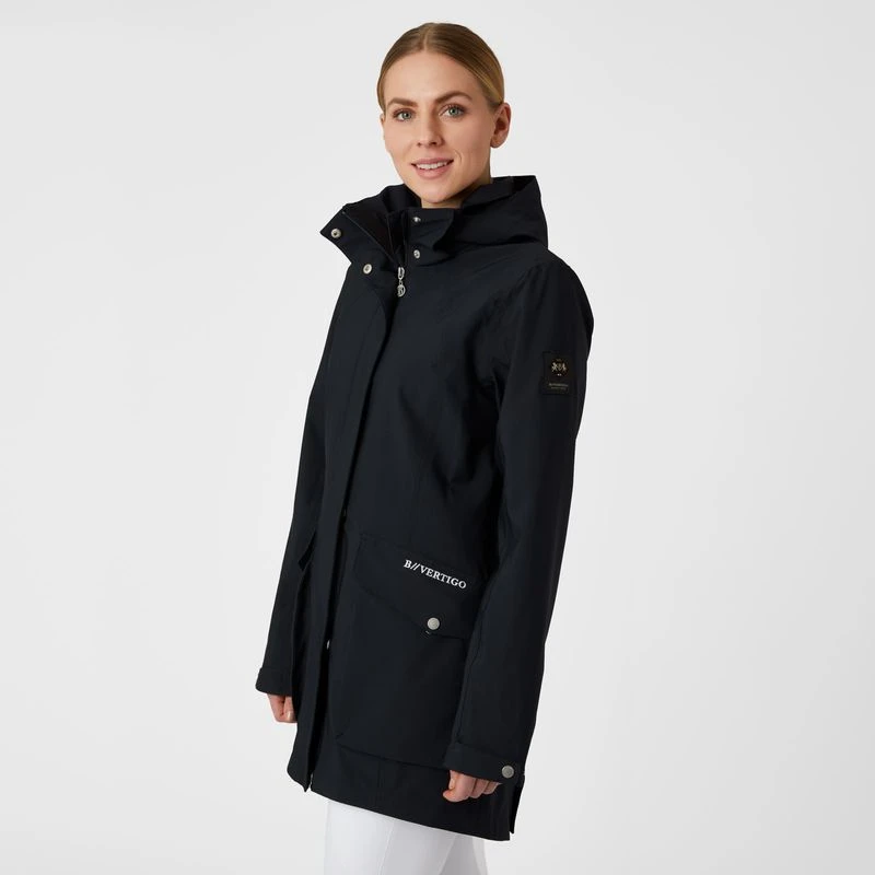 The long cut adds warmth without restricting your movement or damaging the saddle due to two back slits with magnetic buttons. Big pockets with zippers and press buttons keep your belongings safe. The hood can be easily detached with a zipper. Elastic cuffs inside the sleeves are extra comfortable and waterproof. Elastic draw string at the waist allows a flattering shape. Pair it with the B Vertigo Caroline Fleece Vest for extra warmth. Fabric: 90% polyester, 10% elastane.