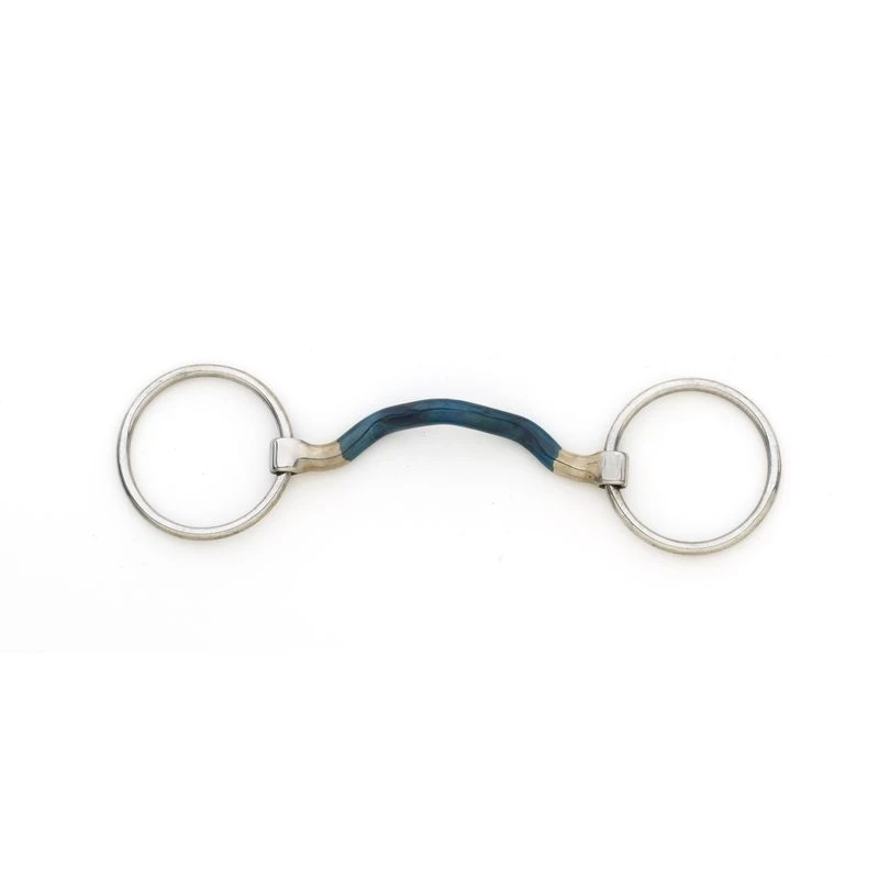The Medium Port Loose Ring Blue Steel Bit is made from Centaur’s technologically advanced version of Black Steel (traditional Sweet Iron). Blue Steel oxidizes faster and easier compared to Black Steel. It will rust when in contact with air and humidity. This surface rust tastes sweet and naturally stimulates additional saliva production, encouraging better acceptance of the bit by the horse.