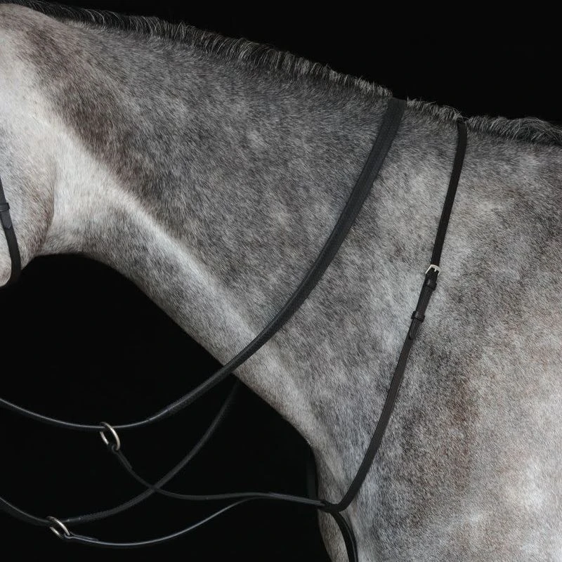 The Collegiate Running Martingale is a traditional running martingale with an adjustable neck strap and girth loop for a comfortable fit.