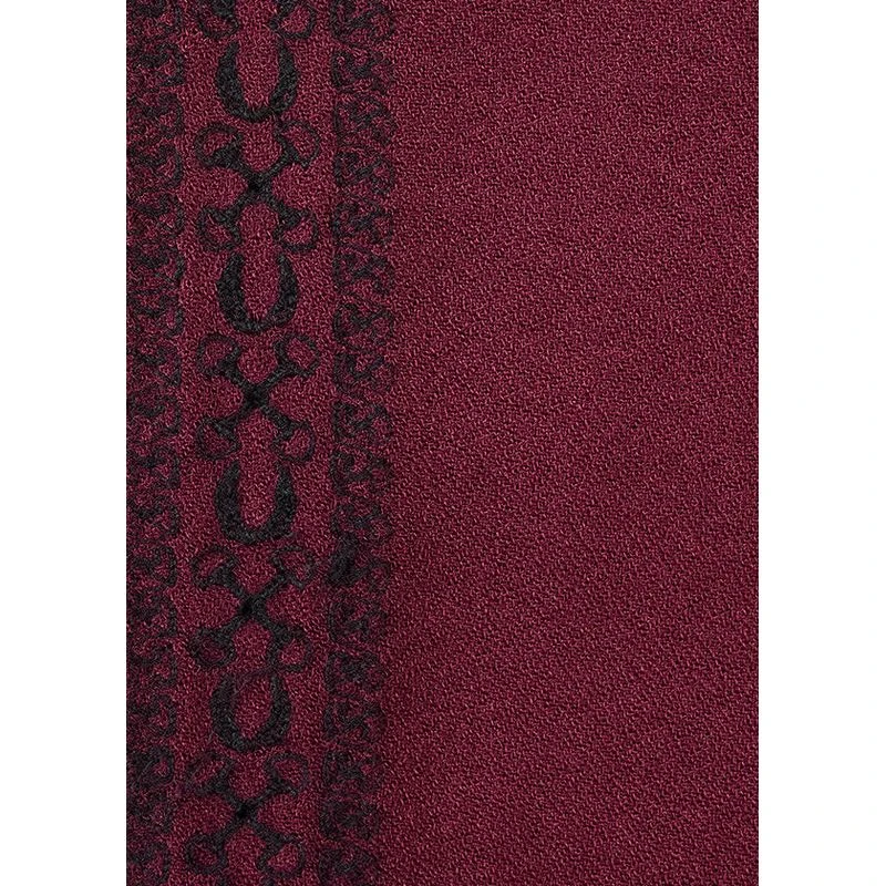 The hip length cut drapes and flows, as intricately embroidered horseshoes and snaffle bits elongate your figure. Pull on dark wash bootcuts and ankle boots for girls’ night out or slide into (skinny) jeans and ballet flats for movie night.