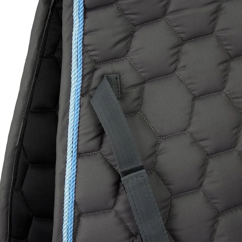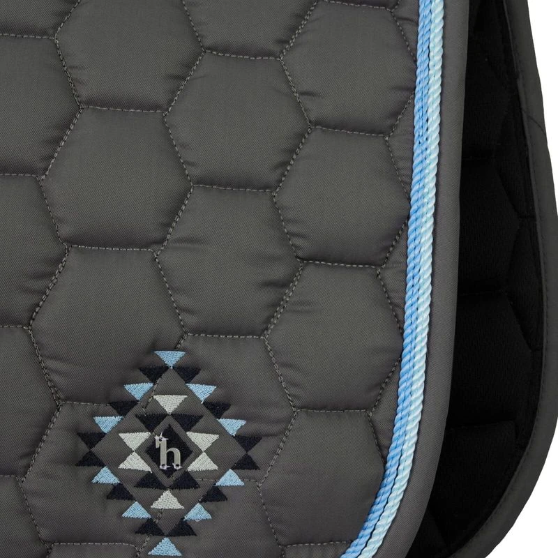 Our Horze Navajo saddle pad is designed with pretty honeycomb quilting. Quick-dry lining and anatomic spine keep your horse comfortable. Two rows of cord add an elegant touch to this saddle pad. The Aztec embroidery in the corner is a gorgeous detail. Pair this saddle pad with the rest of our Horze Navajo range for a full outfit.