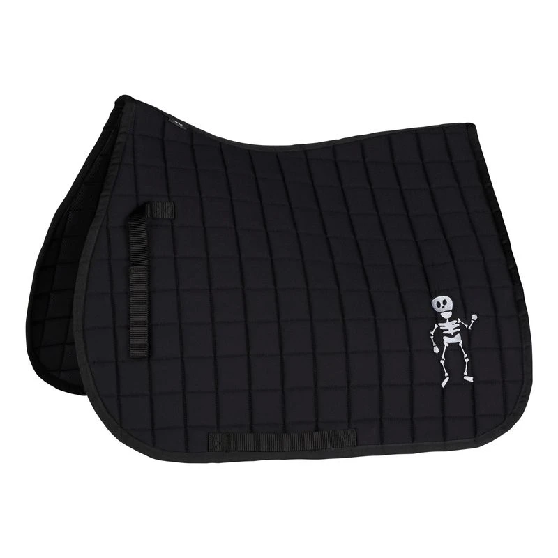 This Halloween saddle pad is the perfect choice for trick-or-treating with your horse. It sits comfortably beneath your saddle and prevents rubbing. Breathable lining keeps your horse cool. Two straps make it easy to attach this saddle pad to the saddle. Halloween embroidery adds a fun feature.