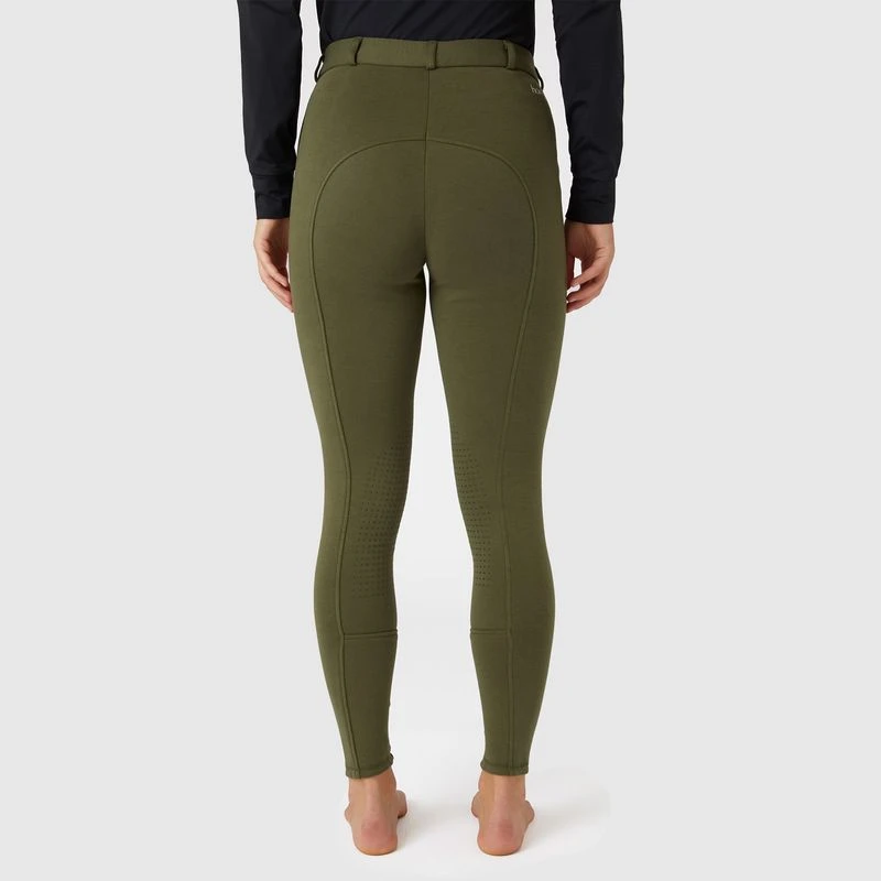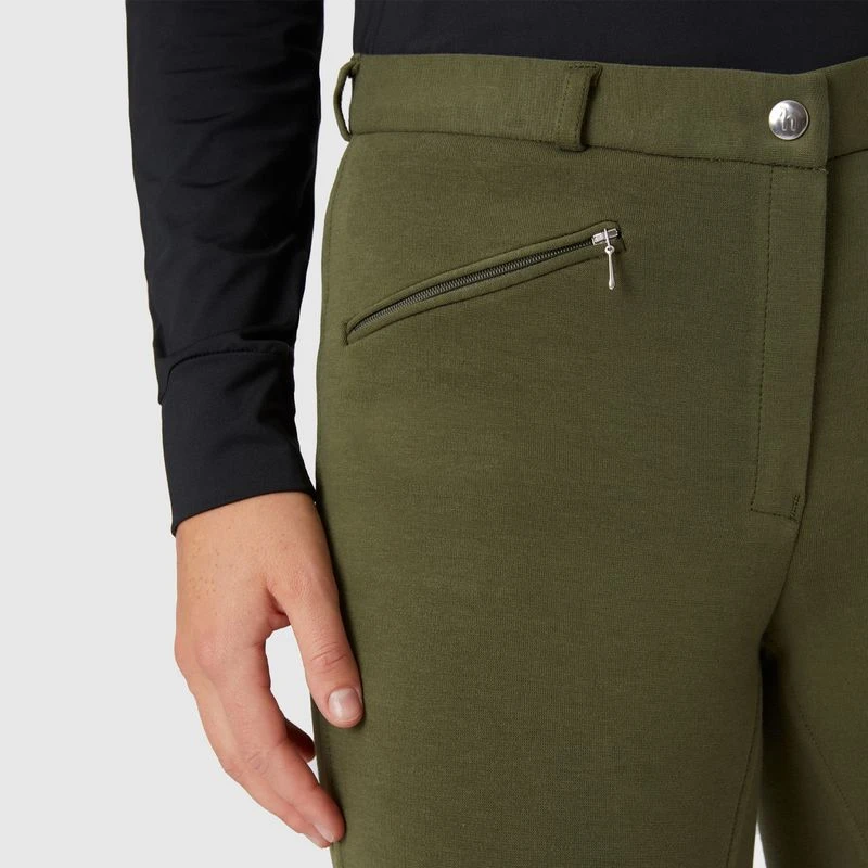 Horze Active Womens Knee Patch Breeches feature a jersey-feel fabric that gives these breeches soft comfort. These riding pants are a nice choice when you don’t want the formality of other high-end breeches. The soft fabric is warm and breathable and ideal for afternoon rides around the stable or on long trail rides. The simple zipper pocket in the front will hold a single horse treat for rewarding a nice ride. You will love the comfort of these pretty breeches.