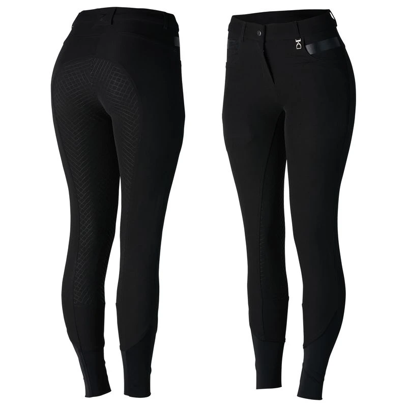 The Horze Sadie breeches are made from breathable material that is both firm and elastic, giving you support and providing mobility. Silicone details on the front pockets and back waist are eye-catching details. The full seat gives you firm contact with the saddle.