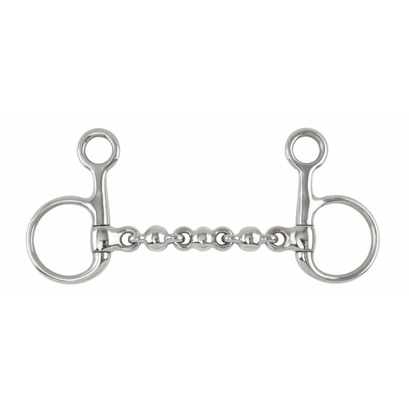 This hanging cheek is made up of multiple links, that make it hard for the horse to pull and lean on.