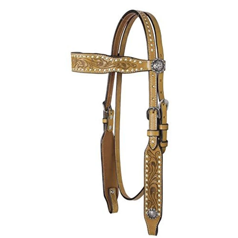 Dramatic and rugged with that vintage look, this headstall is enhanced by buckstitch detail, doubled and stitched, and reinforced by stainless steel hardware.